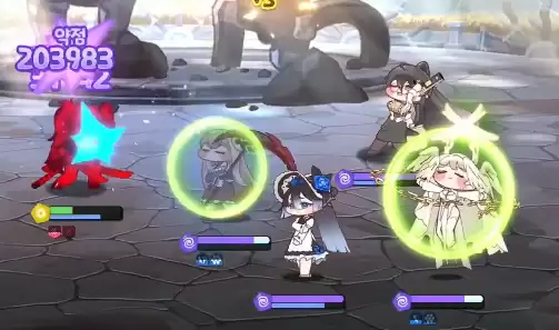 另一位前排角色里昂则具备削弱敌方状态的能力,属于带有输出性质的副T。他能施加“审判”debuff,使目标单位的生命值随时间不断流失,有效压制对手核心输出,提升整体控场效率。