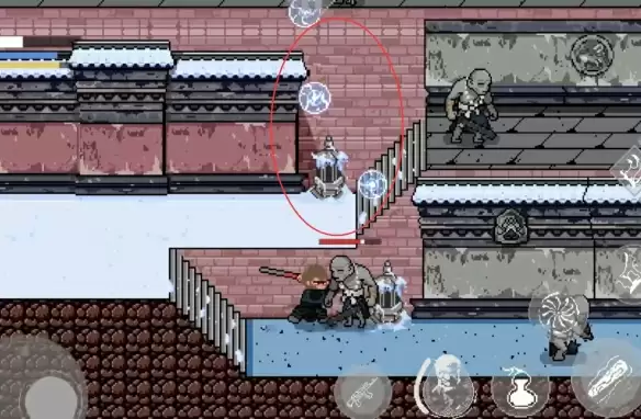 7、怪的背后有个打坐点可以回血,打完有右边楼梯下去;