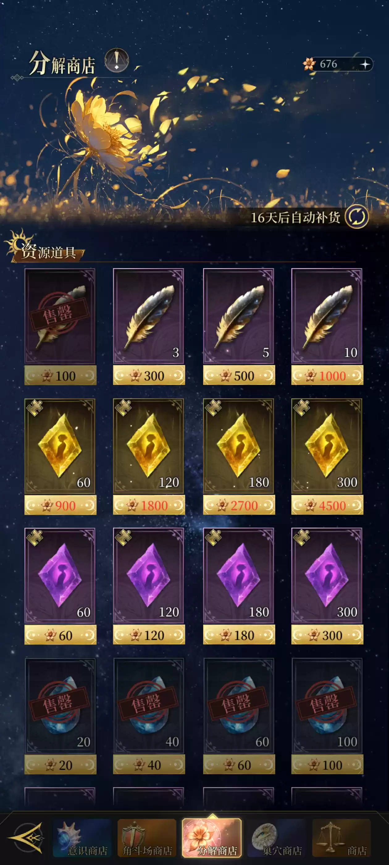 分解商店优先兑换全部水滴道具,其他物资按需购买。