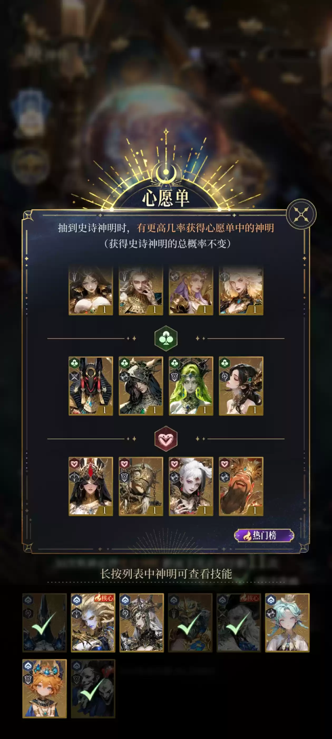 红桃阵营:伊西斯(平民推图核心)、财神(全游戏最强辅助)、月老(全能BUFF机)、阎罗王(控场专家)