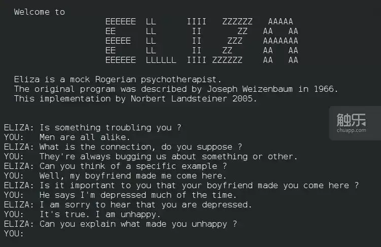 Eliza的很多回应都是对用户状态的重复,这让他们感觉受到安慰