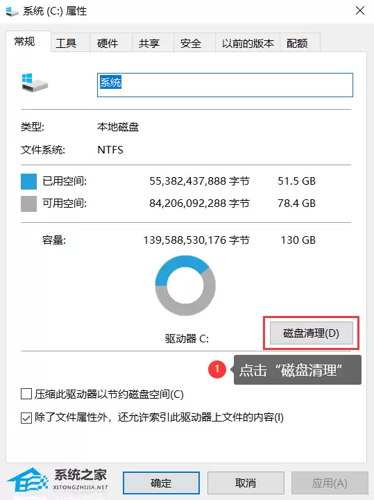 1. 右键单击C盘并选择属性,然后单击磁盘属性窗口中的“磁盘清理”按钮。