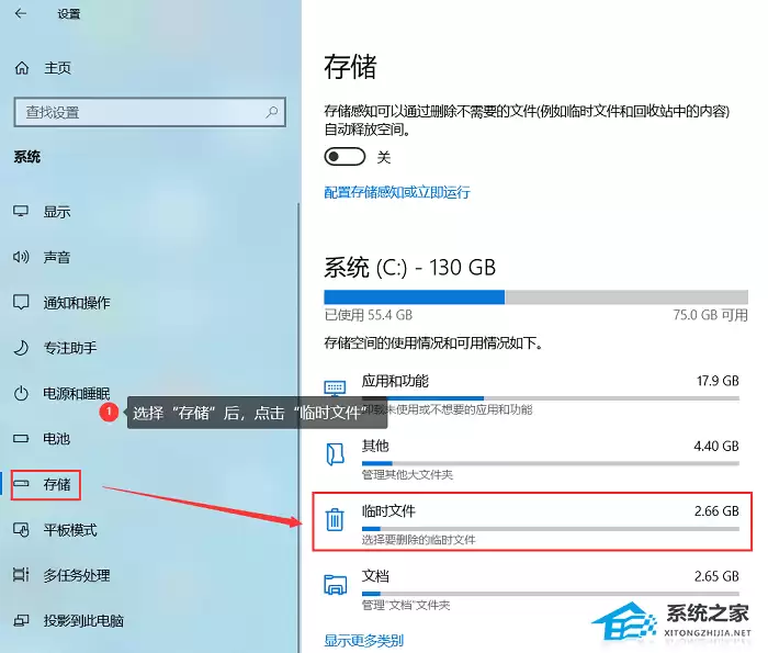 3. 可以使用Windows自带的存储感知功能清理,进入开始菜单设置——存储——打开“【配置存储感知或立即运行】”,便可以清理这些文件了。