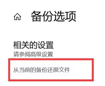 3. 在右侧功能区域选择"更多选项",点击"从当前的备份还原文件"完成系统恢复