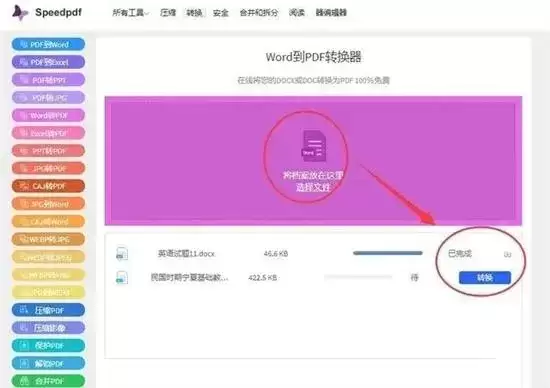 1、访问speedpdf网站,选择"Word转PDF"功能。