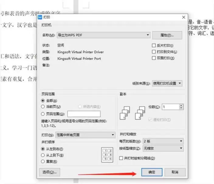 5、确认设置无误后,点击右下角【确定】按钮执行打印。