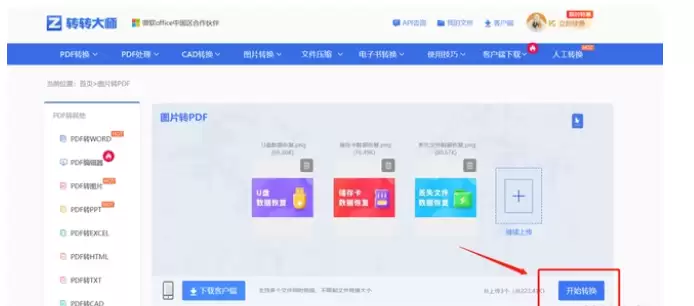 5、进入主界面后,选择"图片转PDF"功能模块。