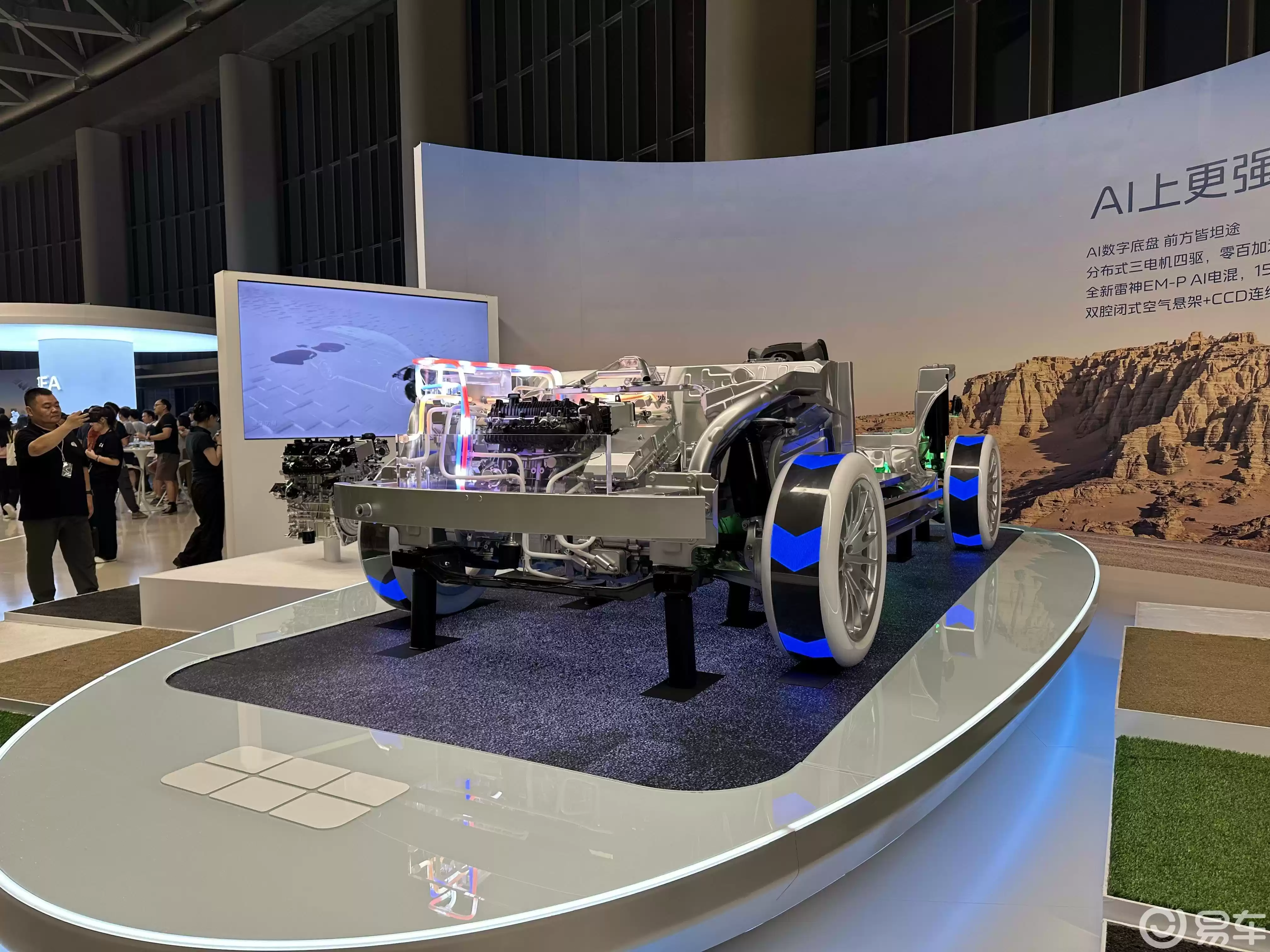 动力系统的差异化配置成为另一大亮点。新一代雷神EM-P AI电混2.0系统提供两种方案:前驱版采用1.5T+单电机组合,系统综合功率300kW,扭矩605N·m;四驱版增加双P4电机,形成三电机布局,综合功率跃升至640kW,扭矩达1165N·m,百公里加速进入4.5秒区间。这种分级并非简单性能划分,而是针对日常通勤与长途出行的精准匹配——CLTC工况下,100km纯电续航版本可满足50km通勤半径的纯电出行,230km版本则覆盖跨城短途,配合4.8L馈电油耗,有效缓解里程焦虑。