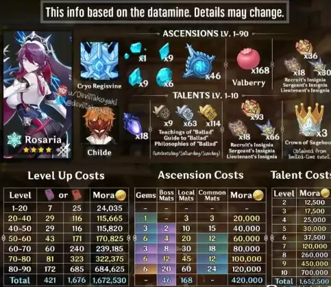 在《原神》中,罗莎莉亚作为一名四星冰元素长枪角色,其培养需要特定的材料组合: