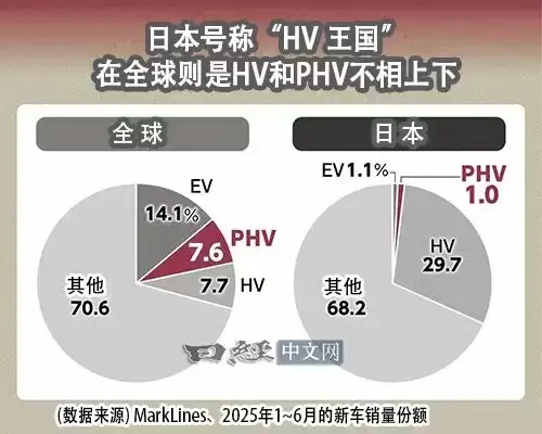 PHV的存在感在统计数据中也有所体现。MarkLines 的统计显示,2025年1~6月,PHV在全球新车销量中所占的份额为7.6%。虽然不及EV(14.1%),但与HV(7.7%)已不相上下。
