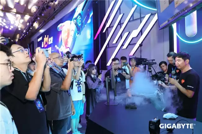 活动现场,技嘉特邀全球顶尖超频大师Hicookie坐镇,这位多次打破世界纪录的专家亲自示范液氮超频技术,带来了一场极致性能的视觉盛宴。
