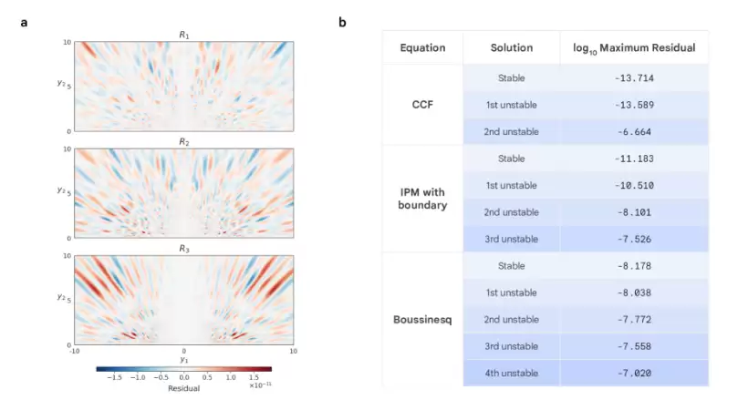 其次,在解的分析过程中,针对 CCF、IPM 和 Boussinesq 方程发现的每一个不稳定解,研究人员通过在其周围对偏微分方程进行线性化来分析其稳定性。对于发现的第 n 个不稳定解,研究人员找到了 n 个与该解具有相同对称性假设的不稳定模态。