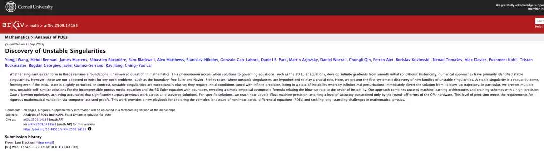 相关研究以「Discovery of Unstable Singularities」为题,已在 arXiv 发表预印本。
