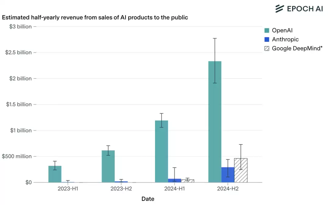 在收入方面,2024年下半年,OpenAI、Anthropic和Google DeepMind的营收增幅均超90%,相当于年化增长率达三倍以上。