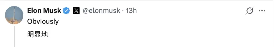 对此,马斯克也是十分关注,直接评论道:“很明显啊。”
