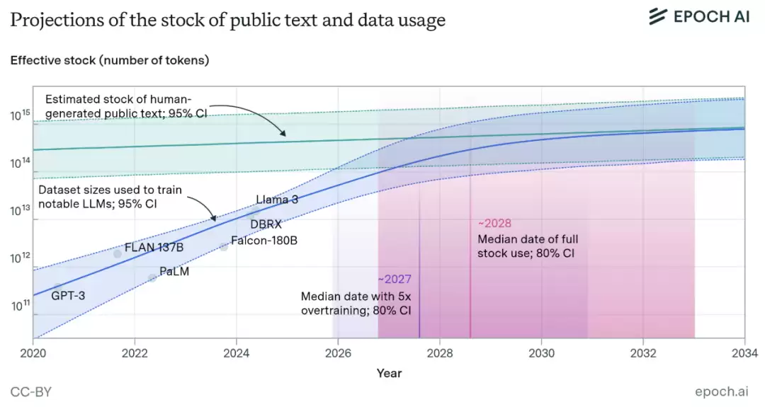 报告指出,目前公开的人工生成文本数量至少能支撑到2027年。