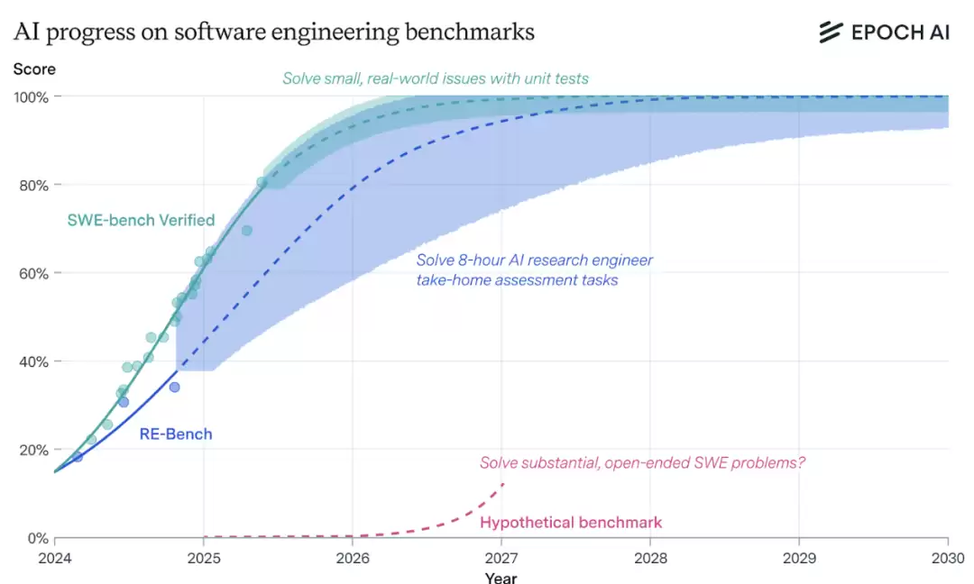 报告指出,按照当前趋势,到2030年,人工智能将能够自主修复问题、实现功能,并解决复杂(但定义明确的)科学编程问题。