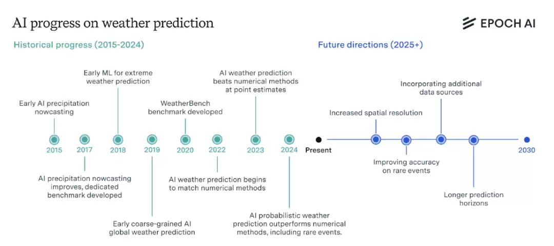 目前,AI已经能够在从数小时到数周的时间范围内优于传统预测方法。但随着数据量的增加,其预测能力还有望进一步提升。