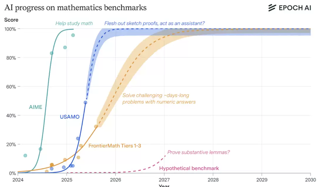 所以Epoch预测,AI很快可能成为研究助理,协助完善证明草稿或数学直觉。