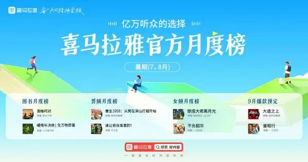 喜马拉雅平台于近日发布全新月度榜单,聚焦7-8月期间上线的优质有声内容,并为用户提前揭晓9月重点新品。这份精彩纷呈的榜单汇集了包括历史文化、个人提升、悬疑推理、热门网文等在内的多类型有声作品。现在登录喜马拉雅App,搜索"好内容"即可畅听精选推荐。