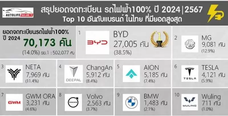 2024年泰国新能源汽车销量对比 来源:泰国汽车新闻 Autolifethailand