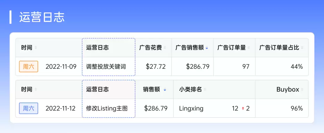 为使产品更好地销售,卖家会经常调整刊登、广告、秒杀活动等策略,并将运营动作记录下来,以便后期复盘效果。