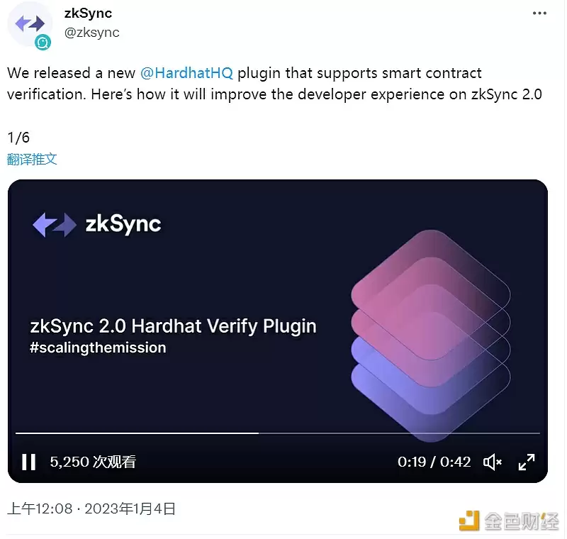 以太坊 Layer2 扩容方案 zkSync 官方账号宣布推出一款支持智能合约验证的新工具 Hardhat 插件。这款插件名为 hardhat-zksync-verify,它允许开发者通过终端命令或者编程方式,验证部署在 zkSync2.0 上的智能合约。