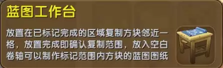 将蓝图工作台放置在已标记区域的复制方块附近,即可自动识别复制范围。只需放入空白卷轴,就能生成该区域内所有方块的详细施工图纸,极大提升了建筑创作的效率。