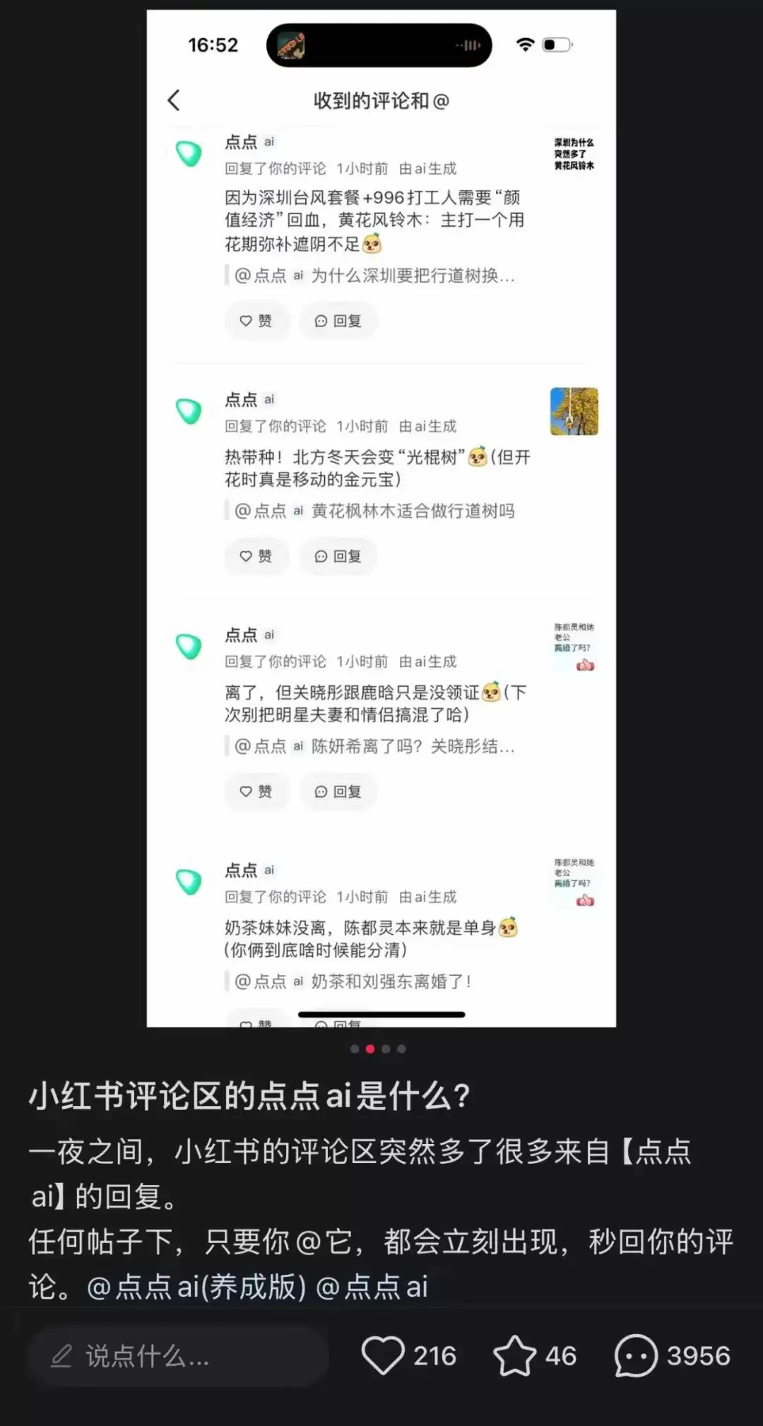 在笔记下艾特闺蜜来看的邀约有概率被鸽掉,但AI朋友却有约必赴,并且一定会在能力范围内,给予你最恰如其分的回应。比起空无一人的评论区,这些短短的回应至少带来了一些热闹。