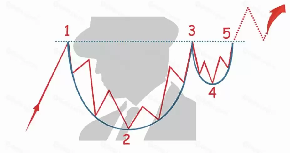 这是一种看涨的延续形态,就像一个茶杯,先是一个圆形的“杯”,然后是一个较小的“柄”。 “柄”表示一个小幅盘整,通常预示着价格会朝着之前的上升趋势方向突破。