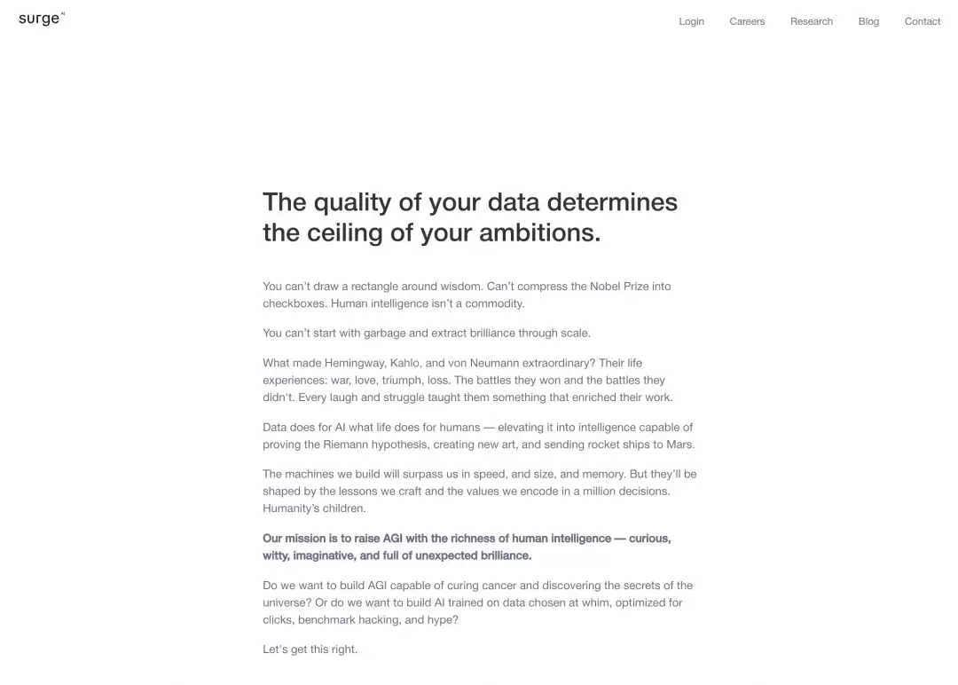他希望Surge能帮助引领AI行业的发展,这意味着他要将自己定位为更具影响力的思想领袖。