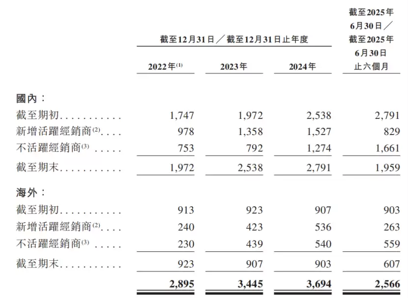 麦科田绝大部分产品通过经销商销售,经销占比超过80%。截至2025年6月底,公司的经销体系包括1959个国内经销商以及607个海外经销商,分销网络覆盖全球140多个国家及地区。