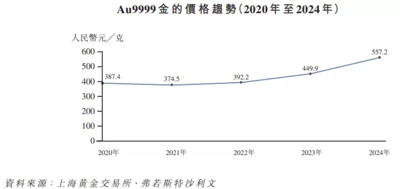 足金首饰在中国内地珠宝市场占主导地位,且占比持续扩大,2024年占总销售收益的72%。可见消费者仍然接受黄金作为文化象征及储存价值的双重角色,且常用于婚礼及送礼等场合。