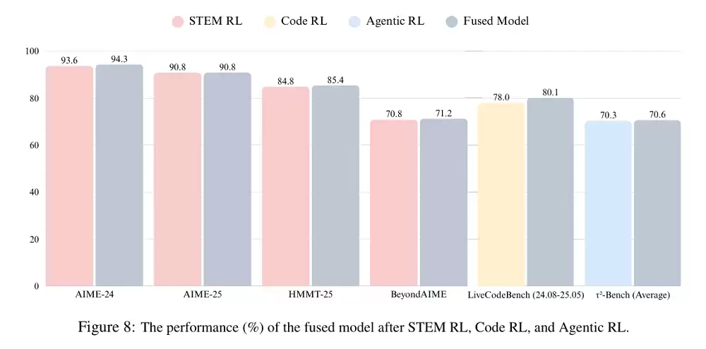 研究团队特别构建了一个高难度的推理训练集,涵盖数学、物理、化学及编程问题,并通过数据比例控制,确保模型既能强化逻辑推理,又不丢失通用能力。
