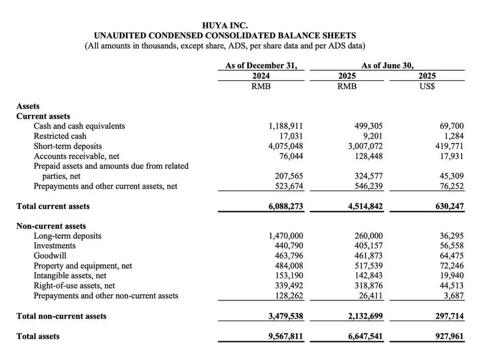 11月12日消息,虎牙公司(NYSE:HUYA)于北京时间2025年11月12日下午(美国东部时间2025年11月12日早晨)公布了2025年第三季度财报。财报显示,该季度,虎牙公司总收入达16 9