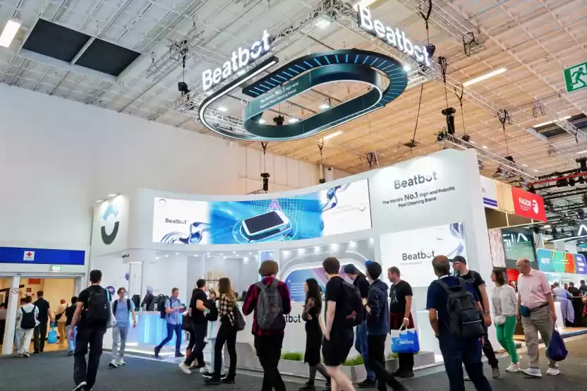 Beatbot AquaSense 2 Ultra在进行泳池水面清洁(图源/企业)