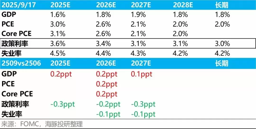 也就是说,2025年除了GDP更好之外,其他不变;2026年开始通胀稍微抬头,但GDP增长预期和失业率预期都是在转好的。