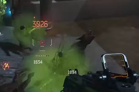 这个榴弹的爆炸范围更大,腐蚀效果也更好是强化腐蚀版本,此外这把枪还带有一个存储效果,可以一次性存储四发腐蚀榴弹,这对比第一把枪来说,在火力这一块是要强上非常多的,这就是游戏中的榴弹类型枪械了。