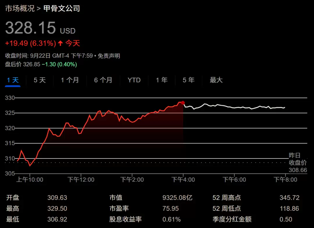 消息公布后,今日甲骨文股价应声大涨6.3%。