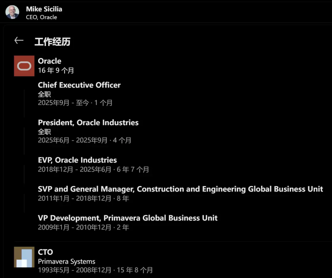 他于Primavera Systems(一家项目管理软件公司)工作了超过15年,直到2009年Oracle收购该公司,他也以原公司CTO的身份加入甲骨文,担任副总裁,可以说是在甲骨文干了半辈子,妥妥的老资格。