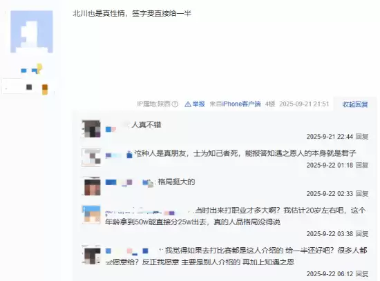赛场外,一段电竞佳话正悄然上演。早在今年5月,人气选手小虞姬z就公开发下承诺:若北川带队夺冠,将奖励十万元。当BLG登顶后,她毫不犹豫地兑现诺言。更令人称道的是,北川此前也曾将签名收入的一半回赠小虞姬z。这种"你赠我十万我说送就送,我拿五万你收我就给"的惺惺相惜,被网友盛赞"这才是电竞圈的侠义风范"。