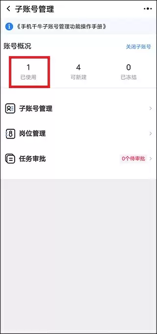 5、系统将自动跳转至子账号管理页面,再次点击"子账号管理"