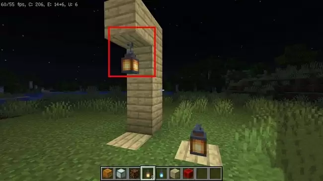 1. 顶部悬挂法:安装位置的正上方必须存在一个固体方块作为固定支点;