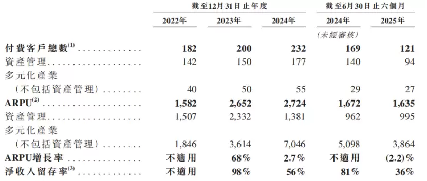 同年,ARPU(每用户平均收入值)为272.4万元,其中资产管理客户的ARPU为138.1万元,非资产管理行业的ARPU为704.6万元。