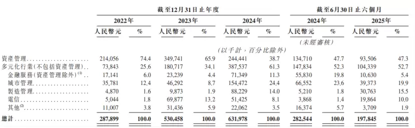 从下游行业来看,2024年至2025年上半年,迅策科技来自资产管理行业的收入占比由74.4%下降至47.3%,来自其他行业(多元化行业)的收入占比则由25.6%提升至52.7%。