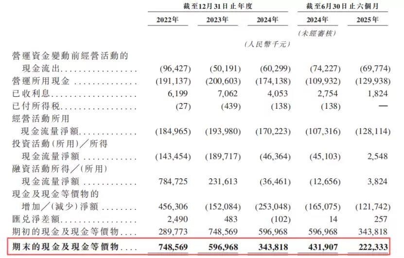 另外,截至2025年6月末,公司账上现金及现金等价物大幅减少,由2024年底的7.49亿元下降至2.22亿元。