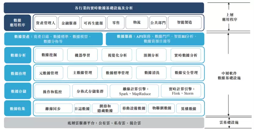 数据基础设施是指支援组织内数据收集、清除、管理、分析或管理的系统,可分为实时与非实时数据基础设施。