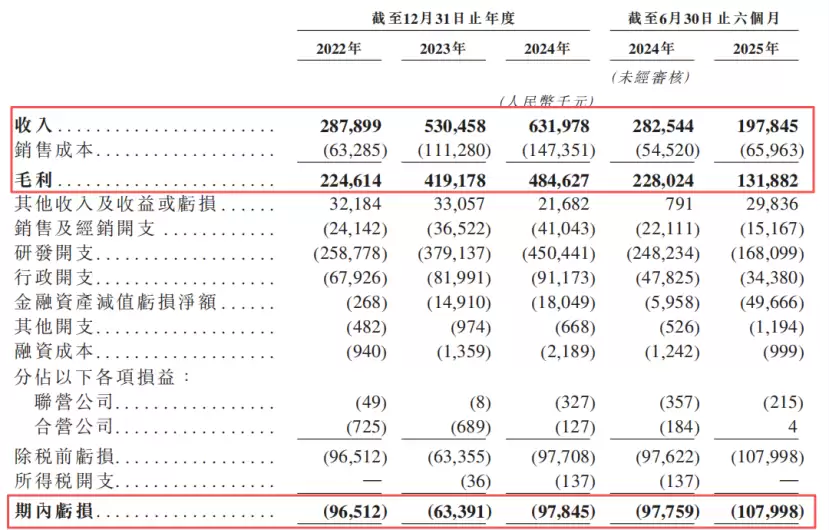 2024年、2024年、2024年、2025年1-6月(报告期),迅策科技的收入分别为2.88亿元、5.3亿元、6.32亿元、1.98亿元。
