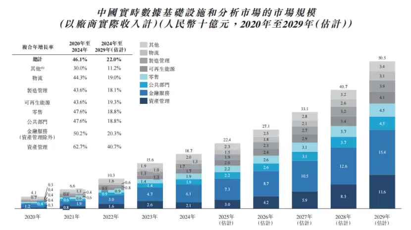 中国实时数据基础设施和分析市场的市场规模,来源:招股书