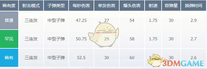 使用心得:这把武器最大的优势在于短时间内能造成可观伤害,但远距离射击时弹道散布明显。要想打出完美爆发,需要确保三发子弹全部命中,并且至少一发射中头部。需要注意的是,因其较高的操作门槛,新手玩家可能需要时间适应这把武器的射击节奏。